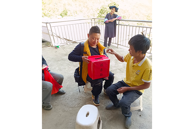 图为聂珂设置流动投票箱组织开展村委换届选举