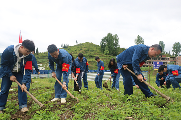 图为青年志愿者为村民除草活动