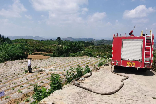 图为消防车送水到烟田