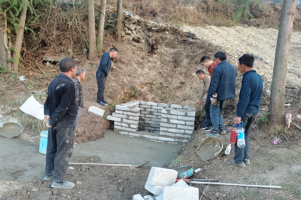 为了防止后续雨季到来后,周围的泥土被冲进水里面,余刚等人建议用水泥砖将水源围起来。在云贵乡人民政府的大力支持和村民们的积极响应,各类施工物资迅速准备到位并开始施工。